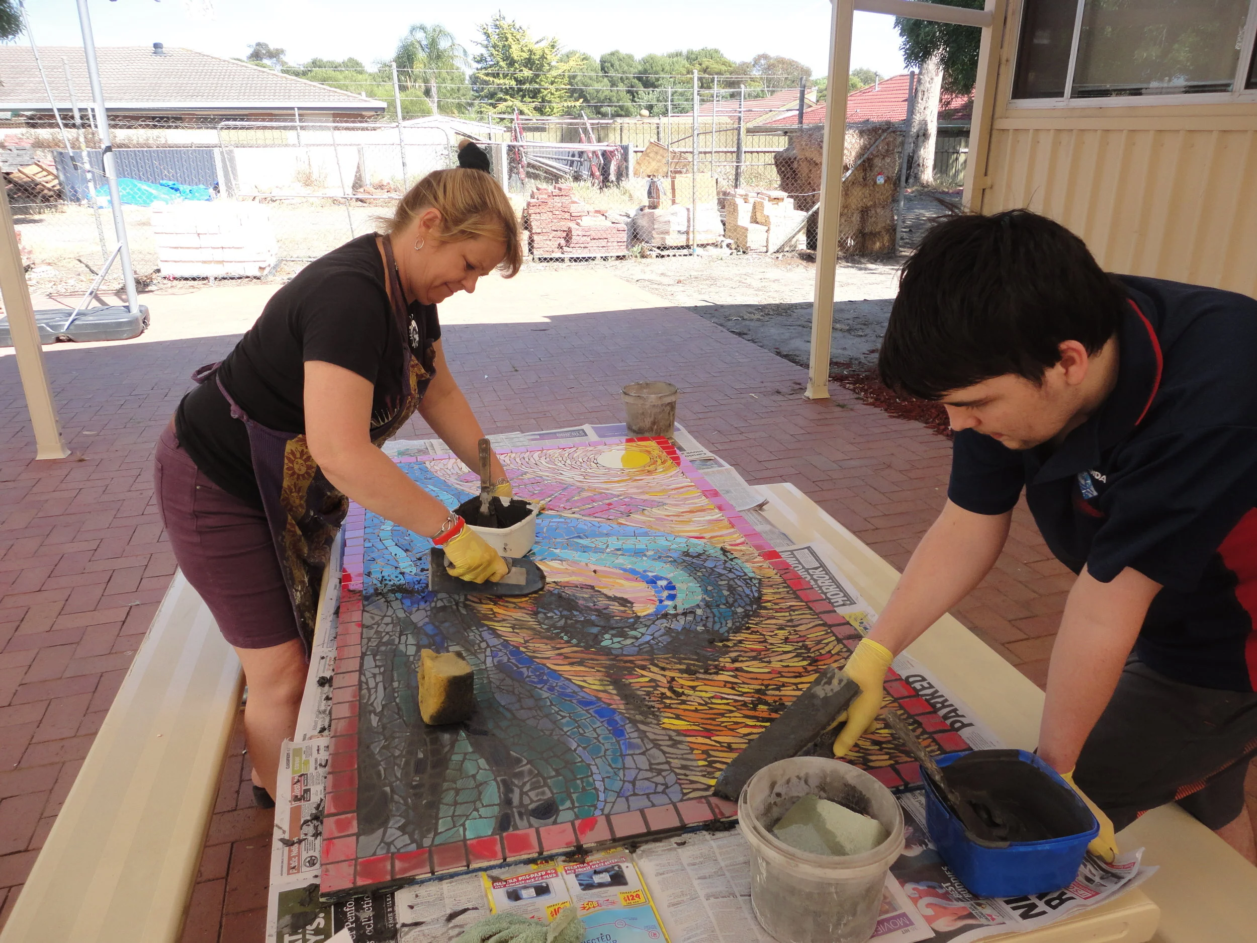 Aldinga Community Garden Mosaic (grouting day)