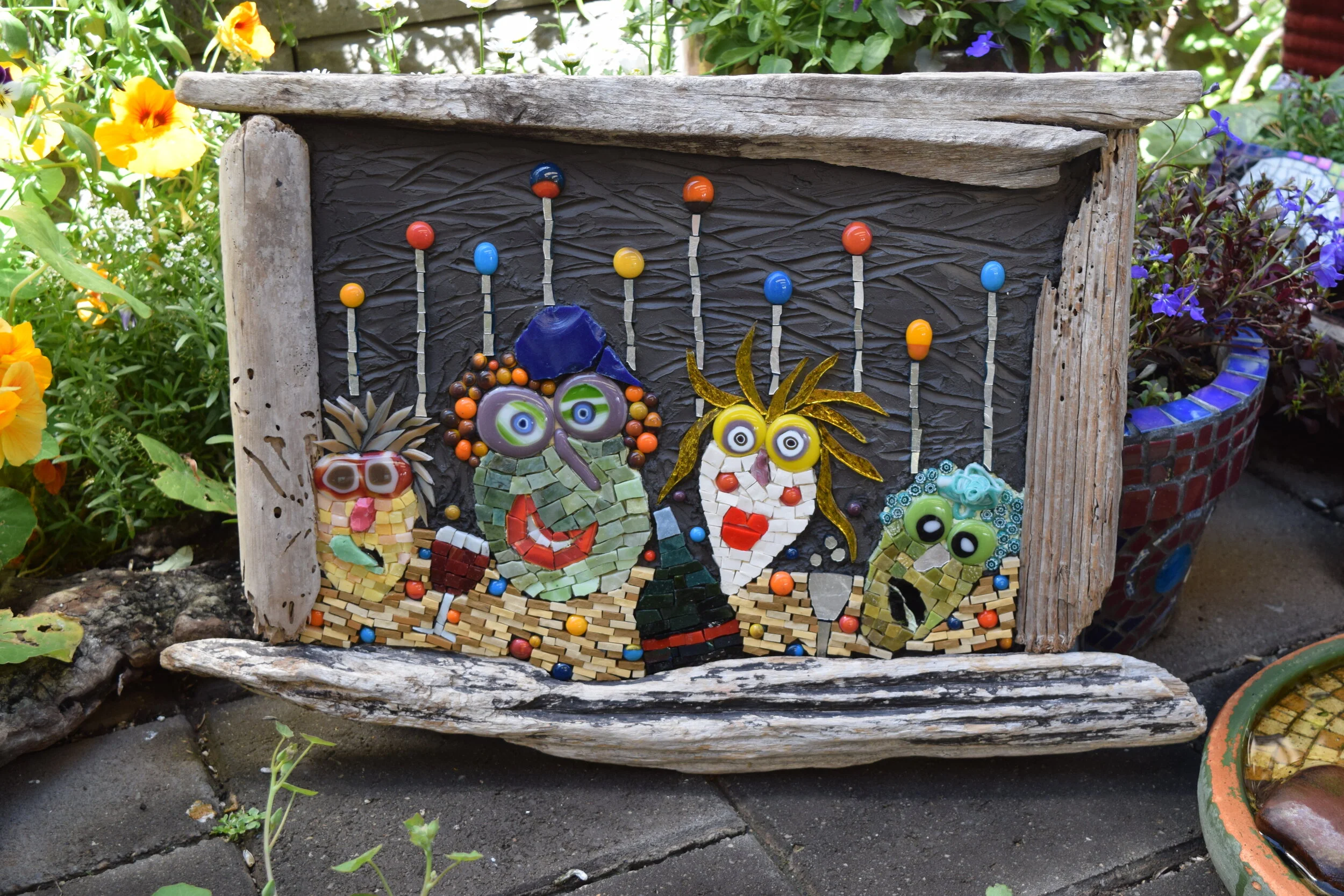 House number on Driftwood (commission) Smalti, Metallic Smalti, Mirror Glass, Cinca Porcelain, Glass Tiles)